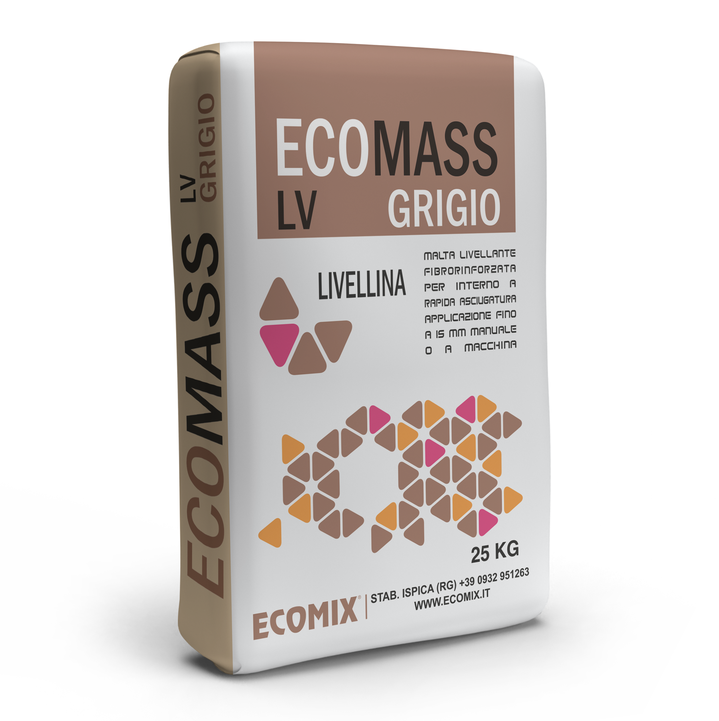 ECOMASS LV grigio è una malta secca a base di leganti idraulici ad idratazione rapida ed alta resistenza, fibre polimeriche di rinforzo, inerti calcarei selezionati, con l’aggiunta di additivi superfluidificanti di nuova generazione. ECOMASS LV si usa per livellare ed eliminare irregolarità nel supporto da 1 a 15 mm. Gli additivi superfluidificante a base policarbossilica evitano i fastidiosi fenomeni di bleeding e di segregazione, caratteristiche tipiche solo degli autolivellanti di ultima generazione. Le speciali fibre presenti, che costituiscono una vera e propria armatura di rinforzo della malta stessa, favoriscono lo sviluppo di una maggiore resistenza al ritiro in fase plastica. I leganti idraulici presenti consentono una rapida asciugatura ma è comunque necessario posare i pavimenti in legno, i pavimenti resilienti e simili solo dopo essersi accertati con igrometro al carburo che l’umidità sia inferiore al 2%.