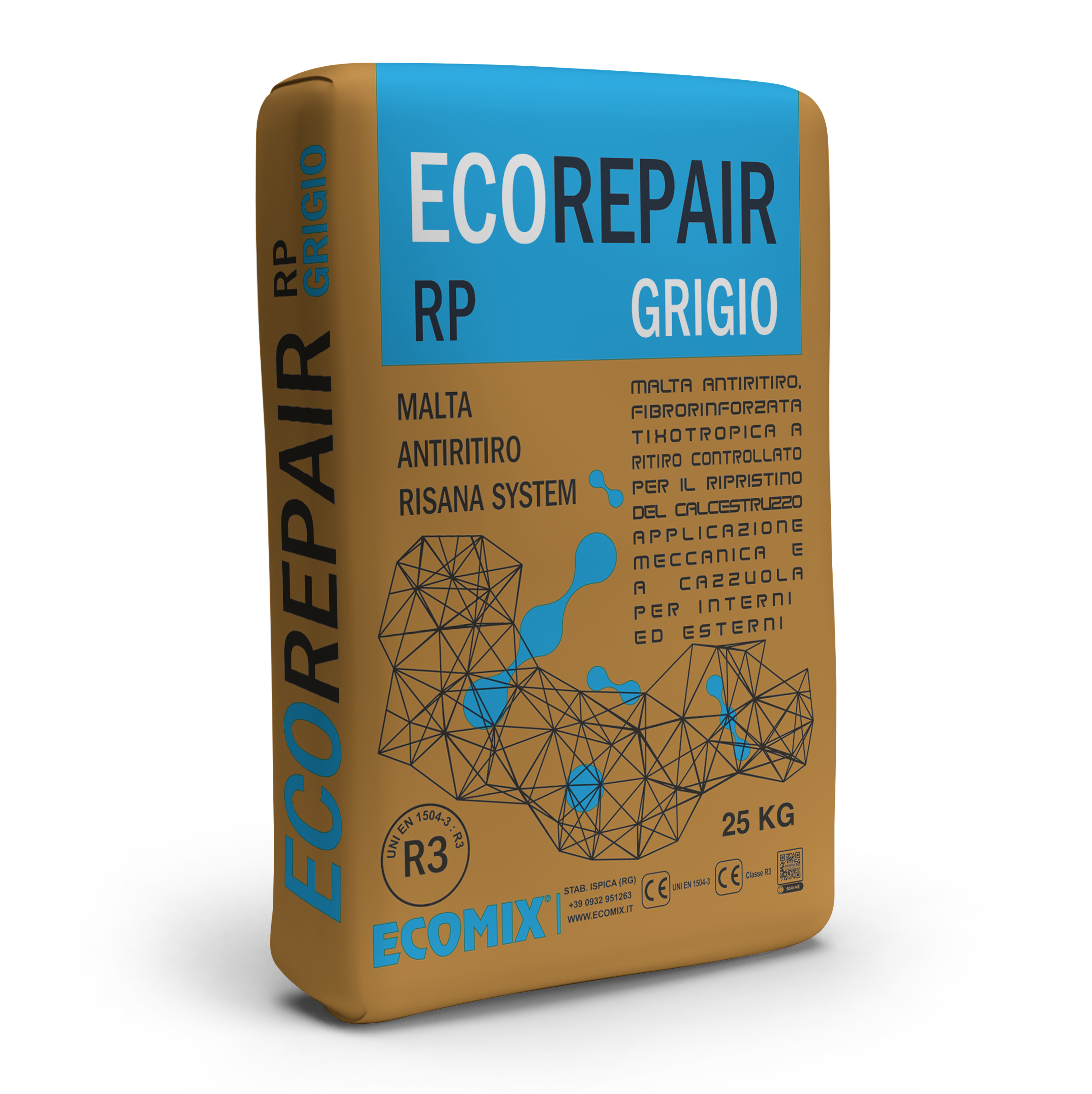 ECOREPAIR RP grigio è una malta secca a base di leganti idraulici ad alta resistenza, inerti selezionati, con l’aggiunta di speciali additivi per migliorarne la lavorabilità, l’adesione e le prestazioni. In conformità alla norma EN 1504-3 “Prodotti e Sistemi per la protezione e la riparazione delle strutture in calcestruzzo” è particolarmente adatta al ripristino e protezione di opere in calcestruzzo degradato, in classe R3 e alla ricostruzione di parti mancanti o deteriorate, sia in interno che all’esterno.