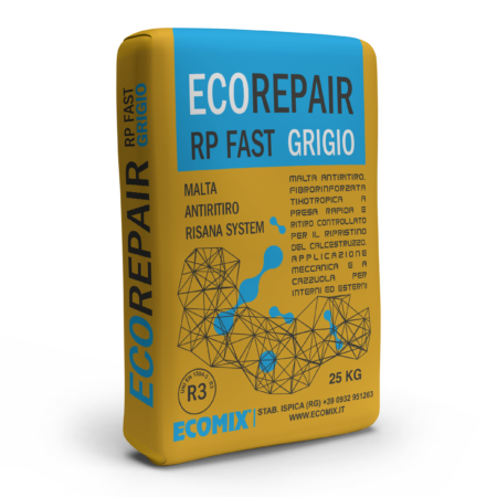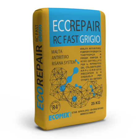 ECOREPAIR RP FAST è un prodotto pronto all’uso, occorre solo aggiungere acqua pulita nella proporzione indicata dal produttore (16- 20%, corrispondente a circa 4-5litri di acqua per ogni sacco da 25Kg).
